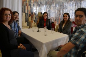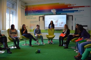 Délben csak lepakoltuk a csomagjainkat a szálláson és siettünk megebédelni – a Hotel Benczúrban, házigazdáink meghívására –, hiszen a négyórás képzés az O.K. központban már várt ránk. A képzést egy rövid bemutató előzte meg, amelyen egy 3D-s kisfilm révén megtudhattuk, hogy mi ennek a projektnek a célja. A bemutató után három csoportra osztottak bennünket és az oktatónkkal megkezdtük a kurzust. Az első napon az EU érdekességeiről és az aktuális gazdasági és politikai problémákról társalogtunk, illetve tanultunk hasznos dolgokat.