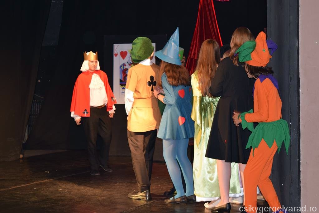 A fellépő 36 diák három produkcióval készült. Az ötödikesek az Én elmentem a vásárba című darabot mutatták be, népi gyermekjátékokkal ötvözve. A VI. osztály egy kacagásra késztető, mókás mesével készült, melynek címe Kártyavári Királyság, szerzője pedig Z. Németh István. A hetedikesek és a nyolcadikosok együtt léptek fel egy igazán tanulságos, ugyanakkor humoros jelenettel, melynek címe Kilenc-kilenc-kilenc.