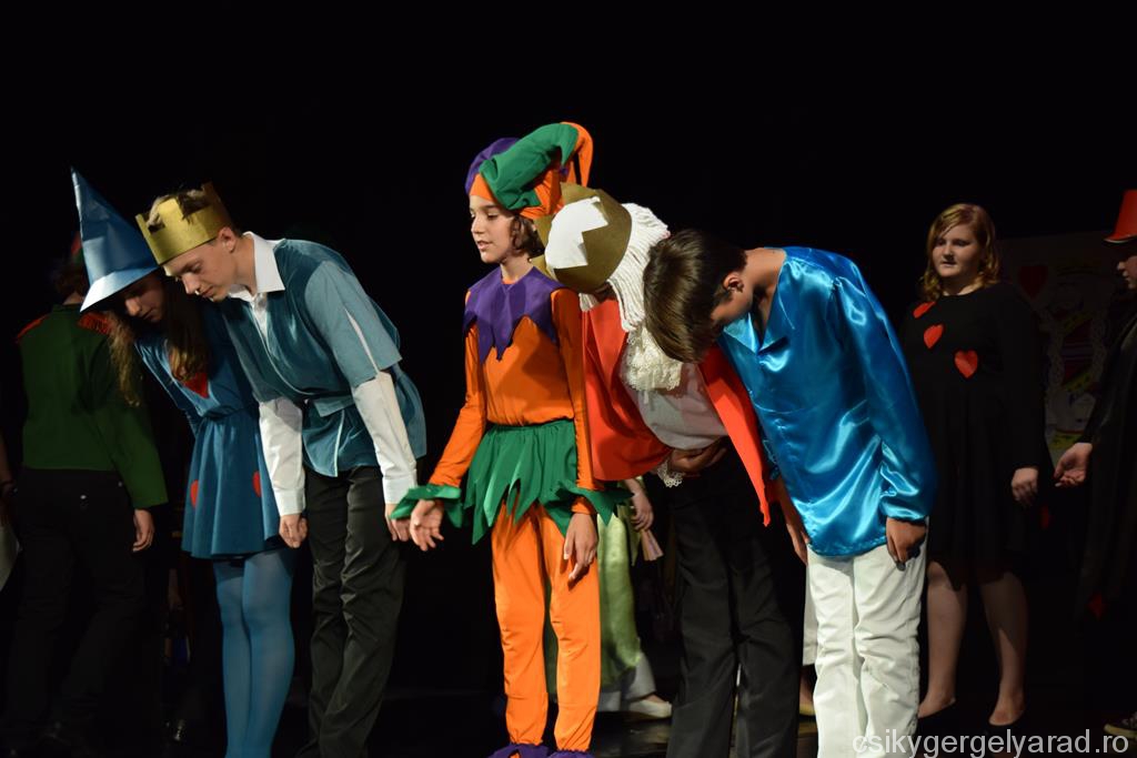 A fellépő 36 diák három produkcióval készült. Az ötödikesek az Én elmentem a vásárba című darabot mutatták be, népi gyermekjátékokkal ötvözve. A VI. osztály egy kacagásra késztető, mókás mesével készült, melynek címe Kártyavári Királyság, szerzője pedig Z. Németh István. A hetedikesek és a nyolcadikosok együtt léptek fel egy igazán tanulságos, ugyanakkor humoros jelenettel, melynek címe Kilenc-kilenc-kilenc.