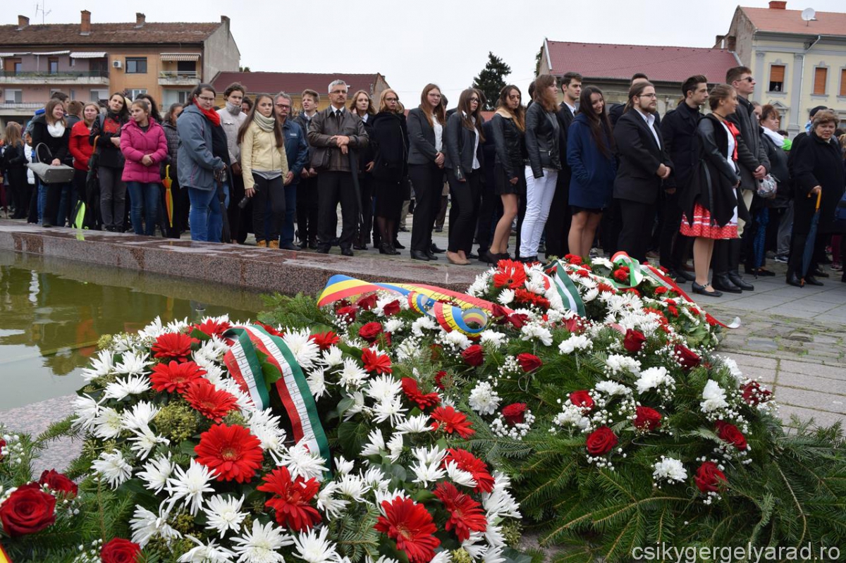Szomorkás őszi időben, szemerkélő esőben került sor Aradon az idei október 6-i megemlékezésre a Szabadság-szobornál, illetve a Vesztőhelyen. Mindkét helyszínen csikys diákok közreműködésével zajlott a koszorúzás. Iskolánk diákjai, pedagógusai, valamint a jelenleg itt tartózkodó magyarországi vendégek testületileg vettek részt az ünnepségeken.