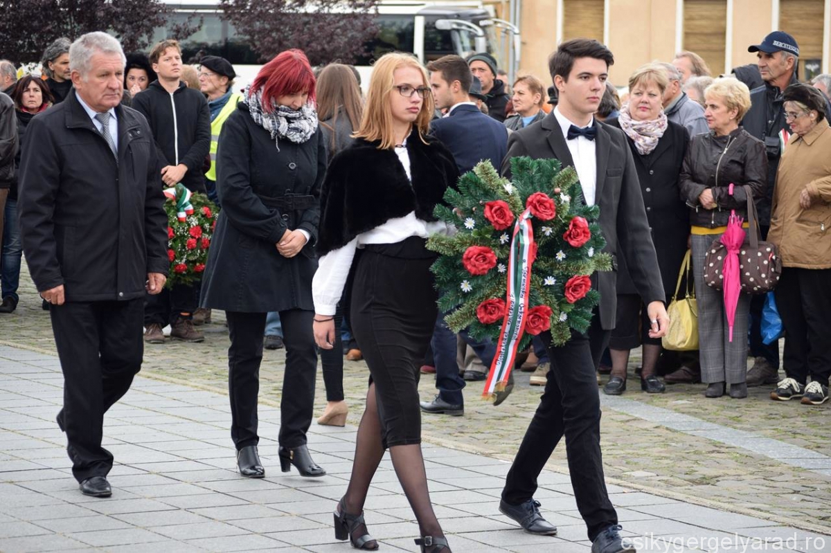 Szomorkás őszi időben, szemerkélő esőben került sor Aradon az idei október 6-i megemlékezésre a Szabadság-szobornál, illetve a Vesztőhelyen. Mindkét helyszínen csikys diákok közreműködésével zajlott a koszorúzás. Iskolánk diákjai, pedagógusai, valamint a jelenleg itt tartózkodó magyarországi vendégek testületileg vettek részt az ünnepségeken.