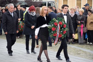 Kalmár Ferenc András, Magyarország szomszédságpolitikájának fejlesztéséért felelős miniszteri biztosa, illetve Faragó Péter, az RMDSZ Arad megyei elnökének beszéde után következett a koszorúzás. A külhoni vendégek, az aradi és Arad megyei politikai és civilszervezetek, egyházi, oktatási és közintézmények képviselői iskolánk diákjainak közreműködésével helyeztek el koszorúkat a Szabadság-szobor talapzatánál. A Csiky Gergely Főgimnázium részéről Hadnagy Éva igazgató és Spier Tünde aligazgató, az aradi Alma Mater Alapítvány képviseletében pedig Nagy Etelka elnök és Gerebenics Mihály kuratóriumi tag koszorúzott.