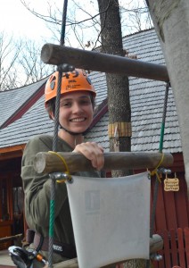Az ötórás utazás sem tudta a lelkes csapat energiáját elvenni: két órát töltöttünk el a kalandparkban és érdekesebbnél érdekesebb pályákat próbáltunk ki. Első ránézésre elég ijesztőnek tűnt az egész, hiszen a magas fák tetejére erősített kötélpályákon kellett haladni. Ezenkívül volt gólyaláb, mászófal és a jól ismert „tiroliana”, azaz a drótkötélpályán való leereszkedés is. Érdekesség volt még a kis farönkökön való lépdelés és a hatalmas faoszlopok közötti bújkálás. Végül mindenkinek sikerült problémamentesen venni az akadályokat.