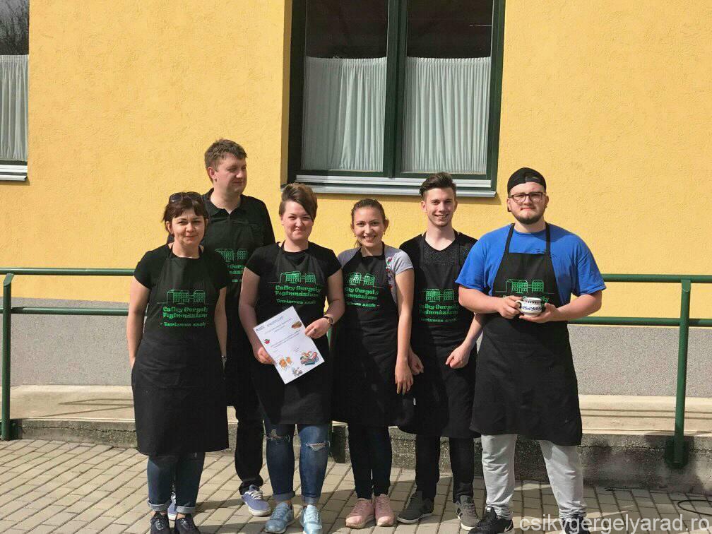 Délután három órára fejeztük be a munkát, s menet közben szemügyre vettük ellenfeleinket, akik nem csak az anyaországból érkeztek, hanem volt közöttük székelyföldi és szerbiai csapat is, és az ételeikbe is belekóstoltunk. Az eredményhirdetést mindenki feszülten várta, mert a kóstolás után kiderült, hogy lesz, akitől tartanunk kell. Nagyon örültünk a méltán megérdemelt harmadik helynek és annak, hogy többen is elkérték a miccsünk receptjét.
