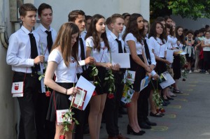 Az osztály huszonöt diákja közül összesen tizenhárman értek el 9-es feletti átlagot, őket Spier Tünde osztályfőnök szólította az ajándékok és az oklevelek átvételéhez. Színtízessel zárt két tanuló is, mégpedig Jakab Fanni és Back István Levente, második díjas Naschauer Karina (9,94), harmadik díjas pedig Sallai Krisztina lett (9,86). Utánuk a magyar irodalom, helyesírási, történelem-, vallás-, ének- és sportversenyeken elért eredményekért különdíjjal jutalmazott diákok is átvehették ajándékukat. (A díjazottak és különdíjasok részletes listáját külön bejegyzésben fogjuk közölni.)