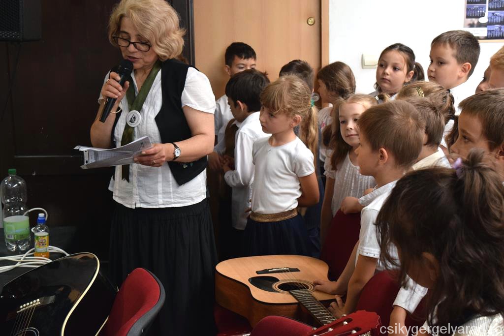 A harmadikosok Vékony Zsolt vezetésével és gitárkíséretével énekelték el a Mesevilág című dalt, majd a harmadikos Tapasztó-Gujdár Péter köszöntő verse hangzott el.
