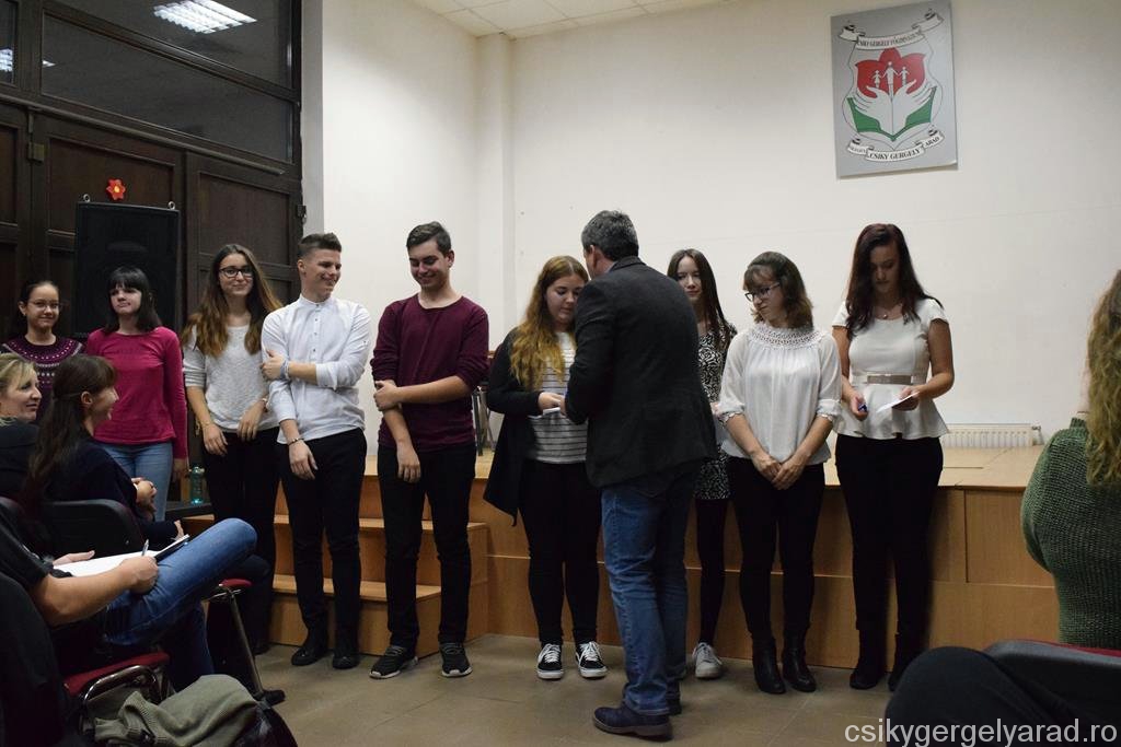 A műsor igen sokszínű volt, a jelenlévők szavalatokat, levélrészleteket, valamint gitárkísérettel előadott megzenésített verset hallgathattak meg a fellépő diákok előadásában. Több osztályból voltak fellépők: Gyarmati Timea, Lészay Sarolta (V. B), Iambric Izabella (IX. C), Almási Dóra, Tóthpál Eszter (X. A), Naschauer Kinga, Mártonfi Gedeon (XI. A), Köteles Nikolette (XII. A), illetve Godó Ákos (XII. C). Őket a Communitas Alapítvány jóvoltából megajándékozták egy kis ajándékkal is.