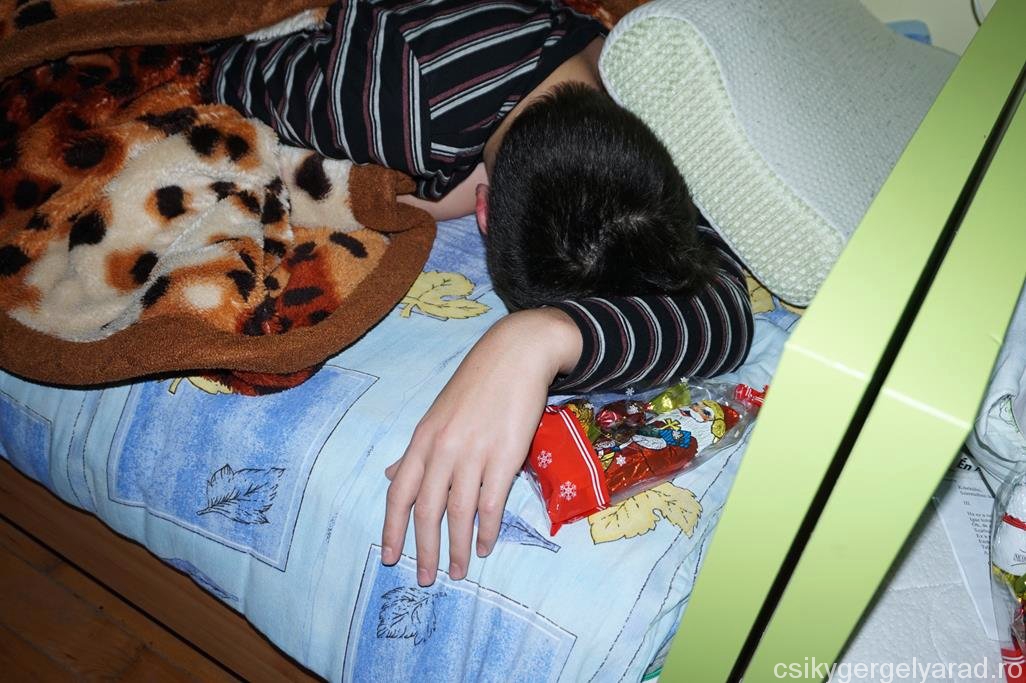 Mindenki nagy izgalommal várta már, hogy mikor kopogtat szobája ajtaján a „Nagyszakállú” (Laci bácsi személyében), akinek esetünkben nem is volt szakálla, de annál jobb volt a szemüvege. J A Mikulásunk szokásához híven krampuszlányokat hívott segítségül körútjára. A krampuszlányok feladata az ajándékok átadása és a piros puszik osztogatása volt. Mindkettővel nagy örömöt szereztek társaiknak. (Már akik felébredtek a kései látogatáskor.) A Mikulás szorgos segédjei voltak: Balogh Nikolett, Dobrai Szilvia, Nagy Dorottya és László Andrea.