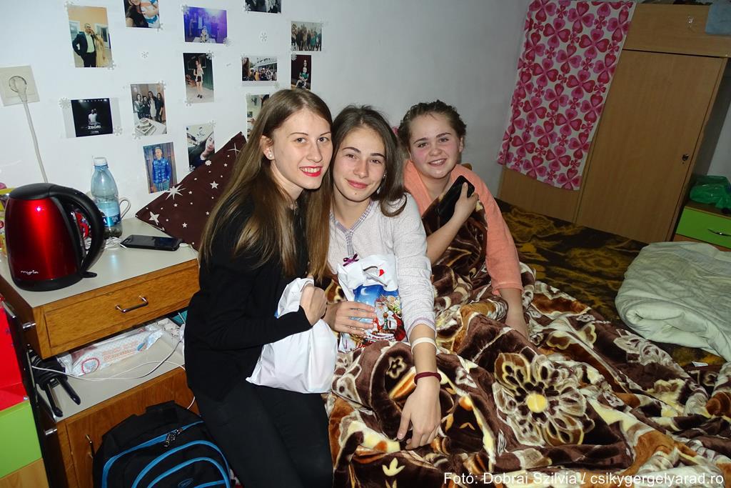Mindenki meglepődve nézett, amikor az éjszaka közepén a Mikulás (esetünkben Laci bácsi, mikulás-jelmezben) kopogtatására ébredt fel. Segítségül idén is krampuszlányok kísérték, akiknek feladata az ajándékok kiosztása és a piros puszik osztogatása volt. Mindkettővel nagy örömöt szereztek társaiknak (már akik felébredtek a kései látogatásunkra). A Mikulás szorgos segédjei idén Balogh Nikolett , Lobotka Zsanett (XI. C), Dobrai Szilvia (XII. B) és László Andrea (XII. A) voltak.