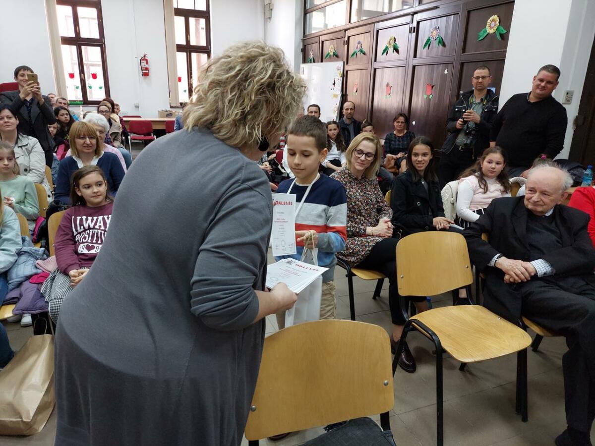 A Zrínyi Ilona Matematikaverseny első két fordulóján mindenki a saját iskolájában vehetett részt, a kódlapok javítását viszont a magyarországi Mategye Alapítvány végezte. A versenyt március 7-én szerveztük meg (erről ITT számoltunk be), a díjkiosztásra pedig szintén csak most, április 12-én került sor, hiszen meg kellett várni, hogy az okleveleket meghozza a posta. A díjazottak részletes listája IDE kattintva található meg. Az április 22-re tervezett utolsó, döntő fordulóra a megyei szakaszon megszerzett pontszámok alapján a következő tanulók jutottak: a másodikos Popa Ayan, a harmadikos Weichelt Hanna, az ötödikes Balogh Ádám, a hatodikos Bíró Mátyás, a nyolcadik osztályból pedig, a kiemelkedően magas pontszám miatt ketten is, mégpedig Budacsek Tímea és Bíró Botond. A döntőt is itthon, Aradon szervezzük meg.
