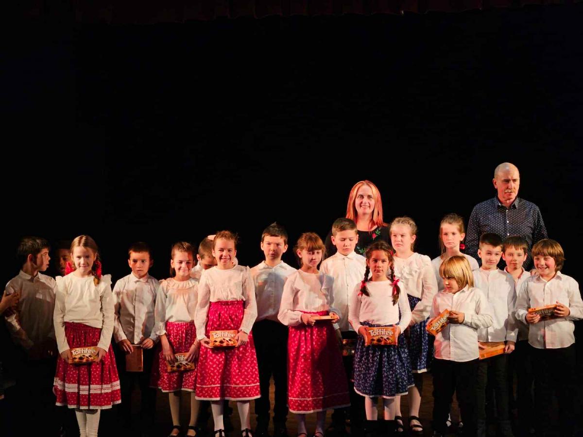 Az elemisek osztályonként, az általános iskolások pedig egy csapatban mutatták meg mi mindent tanultak Patyi Zoltán néptáncoktató keze alatt. A néptánc és népdal tanulása közben, nemcsak a magyar nép szokásait, kultúráját ismerhetik meg, hanem ritmusérzéket, csapatmunkát és egymásrafigyelést is gyakorolnak.