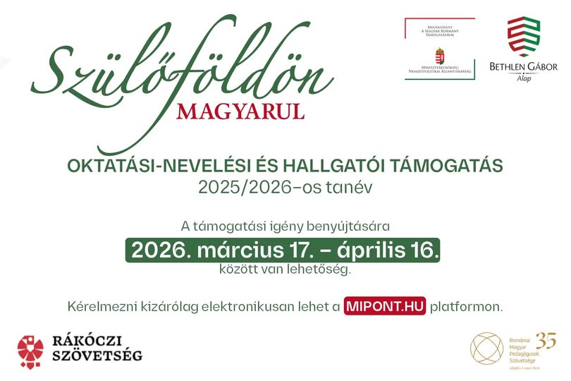A „Szülőföldön magyarul” program támogatója Magyarország Kormánya, lebonyolítója a Bethlen Gábor Alapkezelő Zrt.